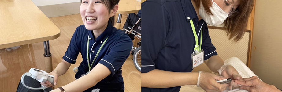 地域トップクラスの看護の体制(20名以上の看護師が在籍)で、さらに、理学療法士・作業療法士・言語聴覚士など専門スキルを有したスタッフが在籍していますので、手厚い支援が行えます。